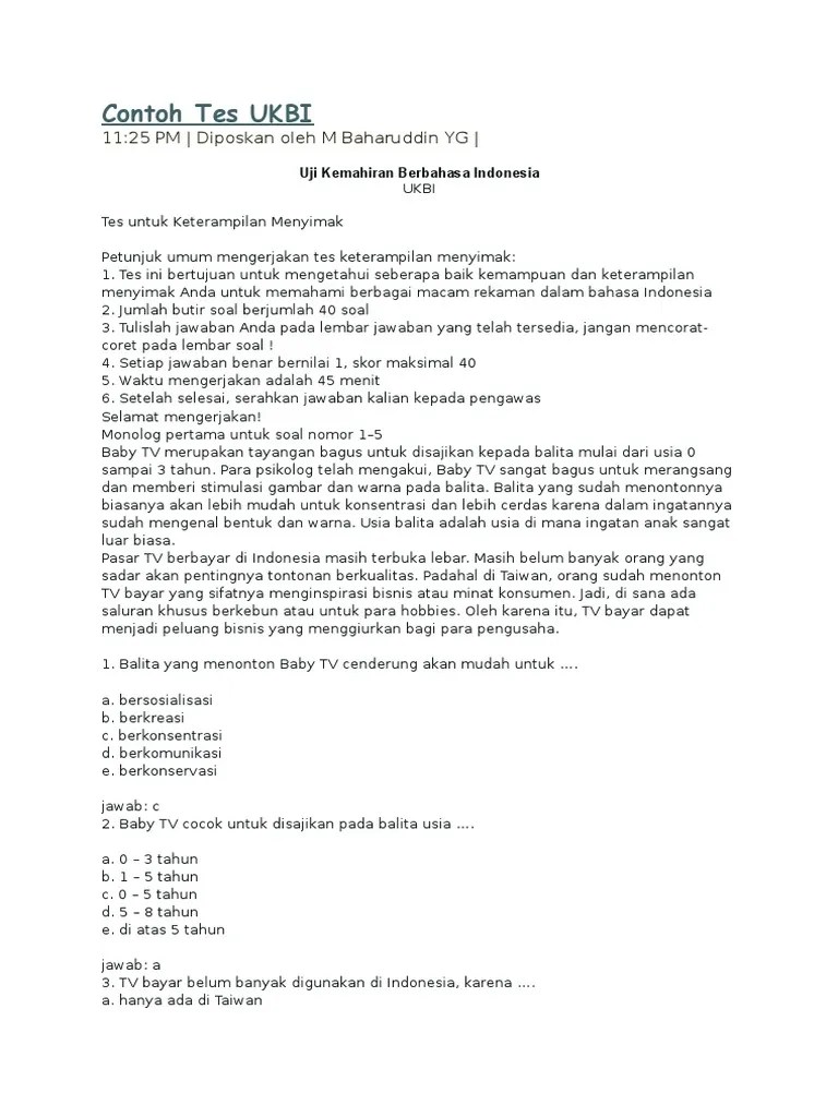 Pemilihan duta bahasa jawa tengah tahun 2019 ini dilakukan mulai dari bulan februari hingga juli 2019. Contoh soal ukbi pdf ilmusosial id from ilmusosial.id. 2 september 2020 tes ukbi, dan malam grand final baru saja . Bahasa di indonesia diwajibkan untuk mengikuti tes ukbi. Setiap dialog dan monolog terdiri atas 5 butir soal.